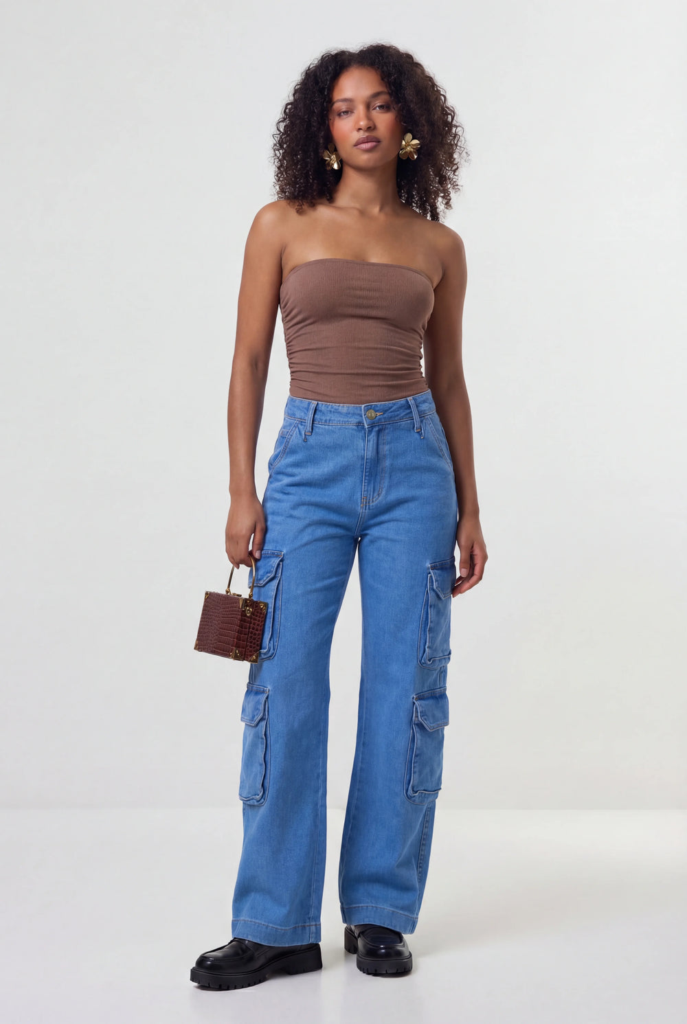 A Calça Jeans Cargo Feminina Eliana Azul combina funcionalidade e leveza em uma proposta moderna para o cotidiano.