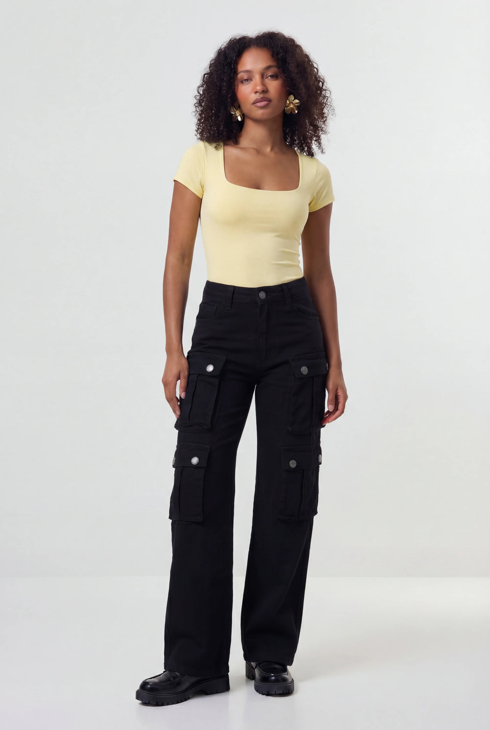 Com modelagem reta e bolsos cargo funcionais, a Yara traduz a tendência utilitária de forma equilibrada e discreta. O caimento confortável acompanha diferentes ocasiões com naturalidade, permitindo composições que vão do casual ao urbano mais refinado.