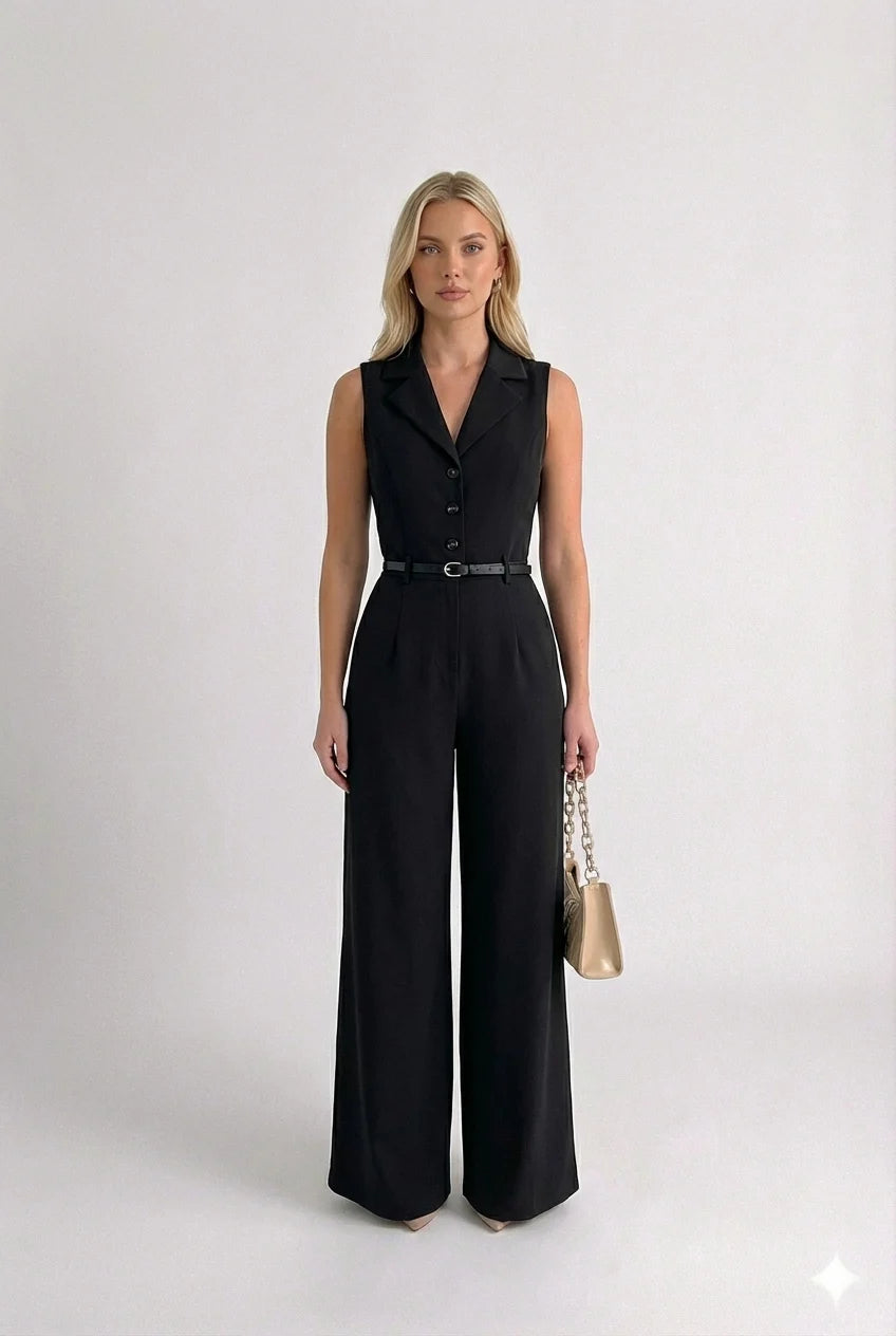 O Macacão Alfaiataria Debora Preto mistura o charme da alfaiataria contemporânea com uma silhueta longa e limpa, trazendo um visual poderoso e discreto ao mesmo tempo. O colarinho estruturado alonga o pescoço, enquanto os botões frontais reforçam o acabamento refinado. A cintura é marcada pelo cinto minimalista, criando proporção e equilíbrio na medida certa.