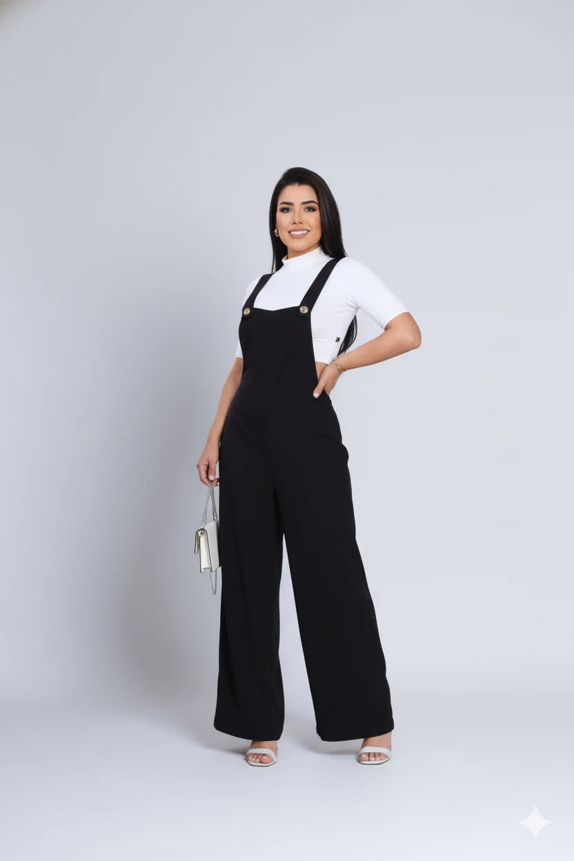 Macacão Jardineira Fabiola - Preto